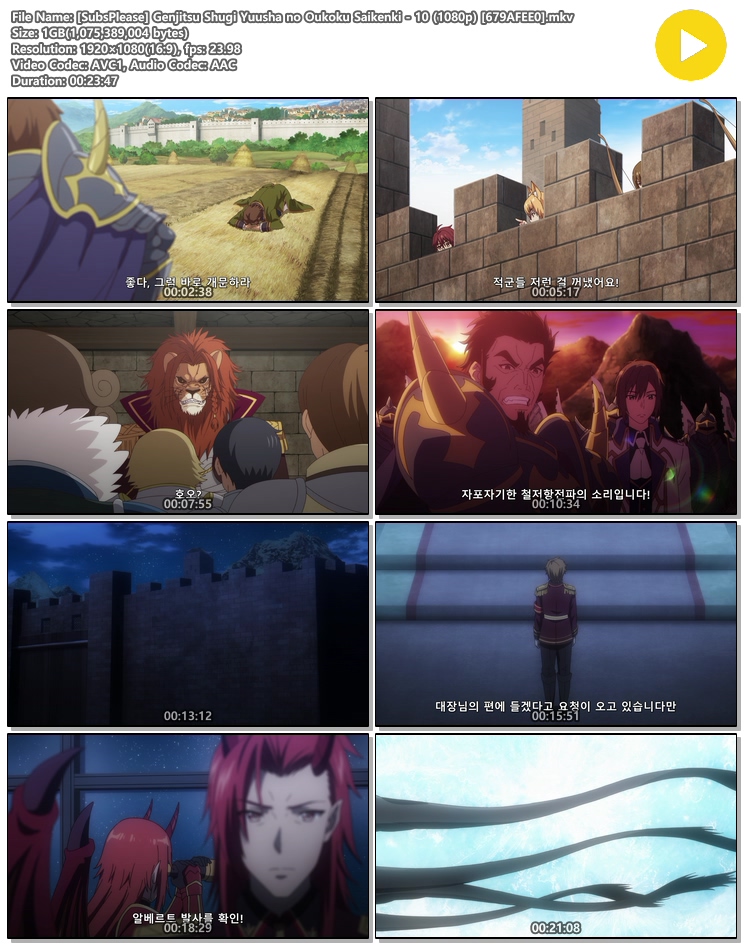 | [SubsPlease] Genjitsu Shugi Yuusha no Oukoku Saikenki - 10 (1080p) [679AFEE0].mkv | 1 G | MKV | 00:23:47 | 1920x1080 |