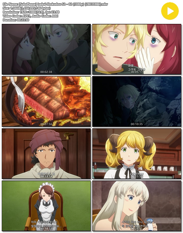 [SubsPlease] Isekai Shokudou S2 - 02 (1080p) [28E359B6].mkv 1.4 G MKV 00:23:50 1920x1080