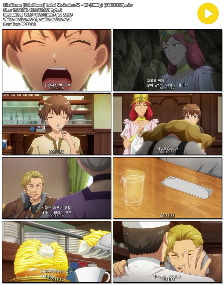 [SubsPlease] Isekai Shokudou S2 - 05 (1080p) [7ACEC158].mkv 1.4 G MKV 00:23:50 1920x1080