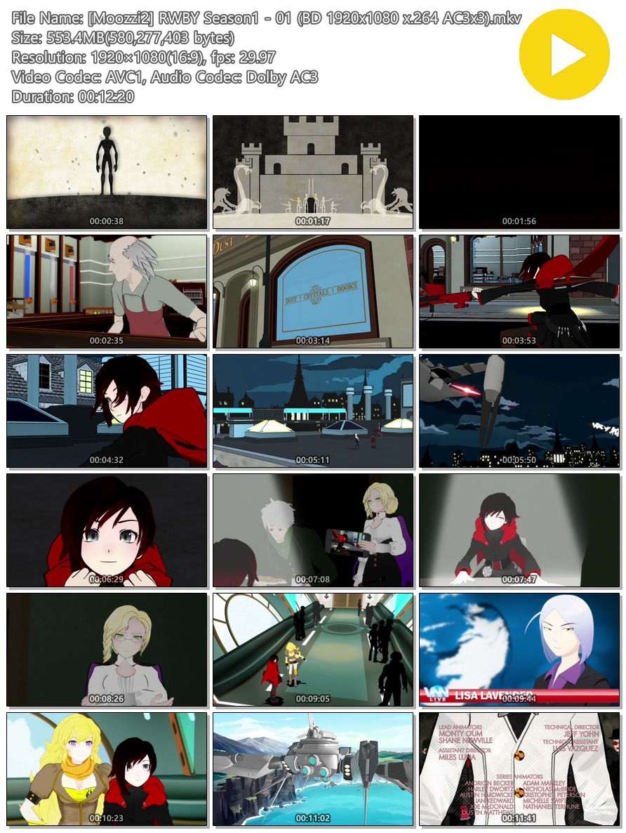 | [Moozzi2] RWBY Season1 - 01 (BD 1920x1080 x.264 AC3x3).mkv | 553.4 M | MKV | 00:12:20 | 1920x1080 |