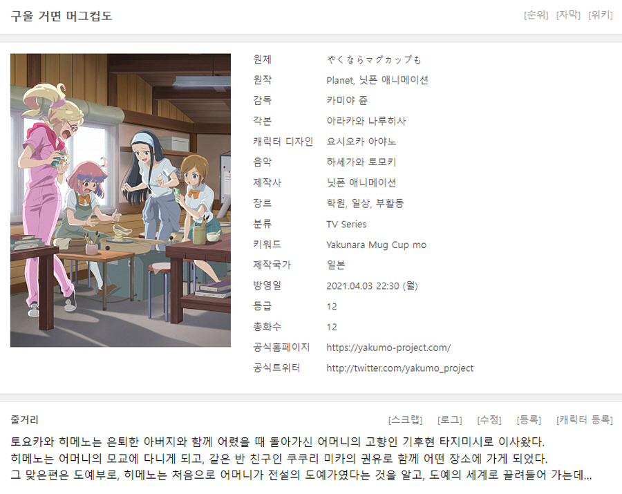 | [Ohys-Raws] Yakunara Mug Cup mo - 03 (BS11 1280x720 x264 AAC).mp4 | 110.6 M | MP4 | 00:15:00 | 1280x720 |