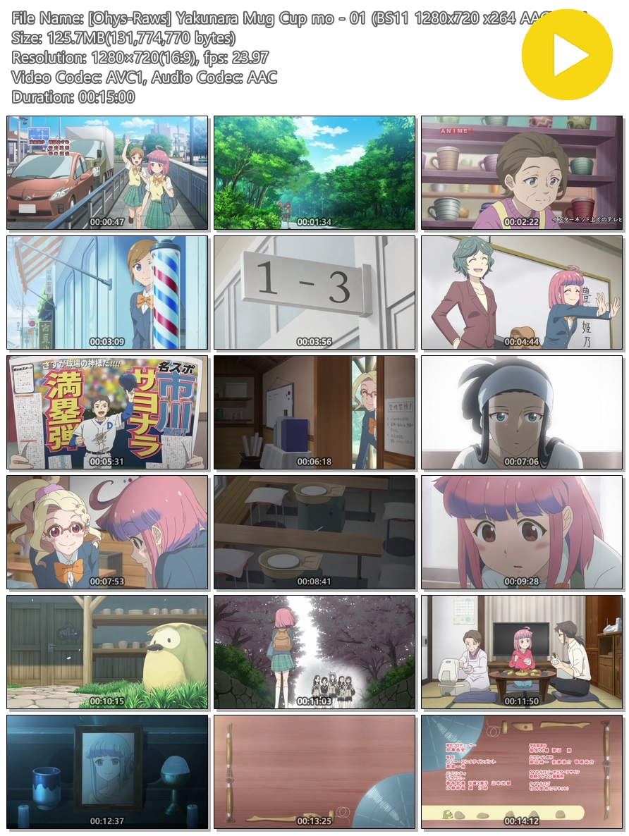 | [Ohys-Raws] Yakunara Mug Cup mo - 01 (BS11 1280x720 x264 AAC).mp4 | 125.7 M | MP4 | 00:15:00 | 1280x720 |