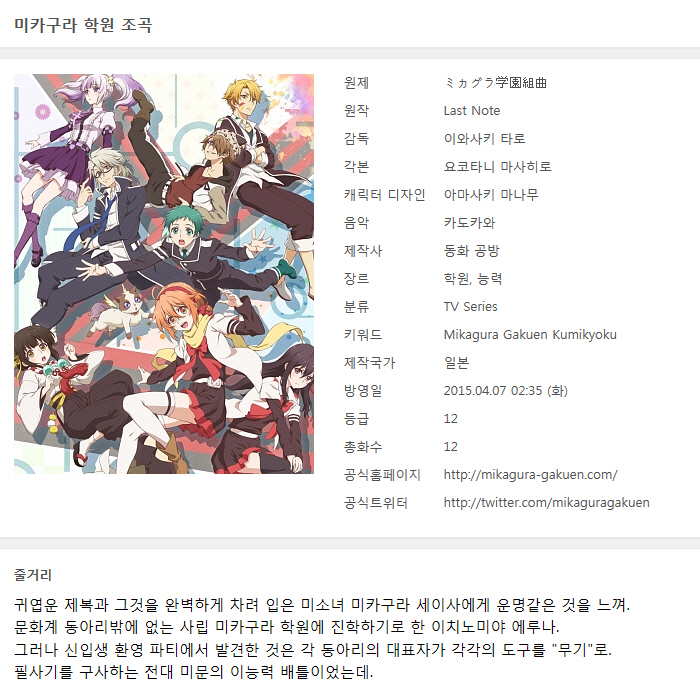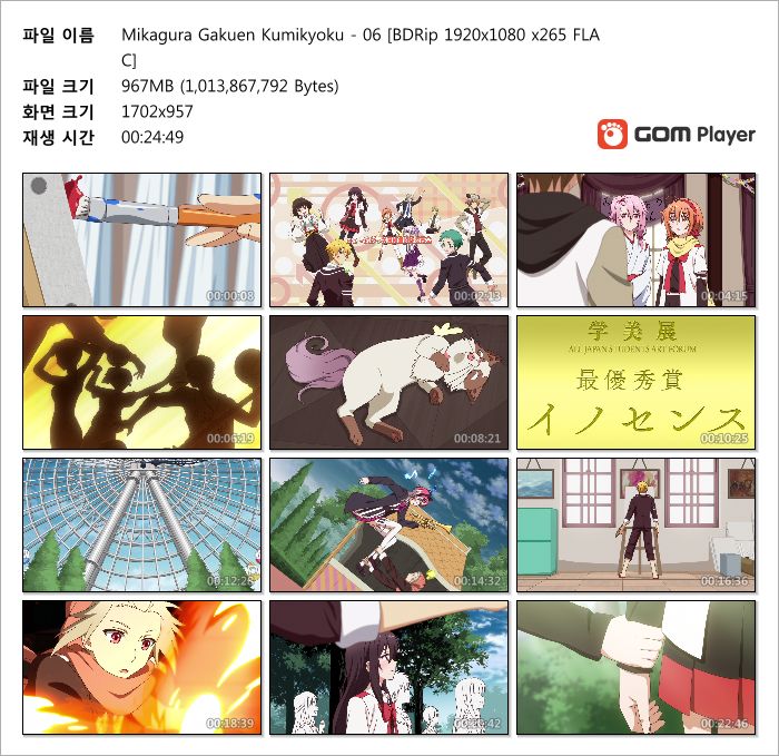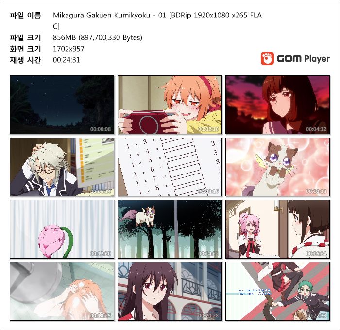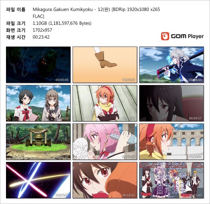 | Mikagura Gakuen Kumikyoku - 12(완) [BDRip 1920x1080 x265 FLAC].mkv | 1.1 G | MKV | 00:23:42 | 1920x1080 |