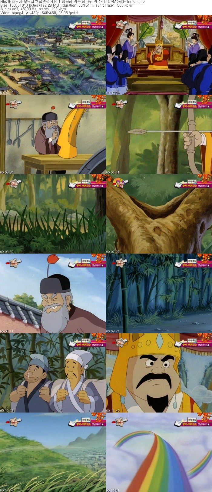 | 배추도사 무도사 옛날옛적에.E09.세가지 보물.480p.QAM.Xvid-TooKids.avi | 171.1 M | AVI | 00:15:04 | 640x480 |