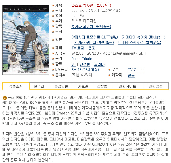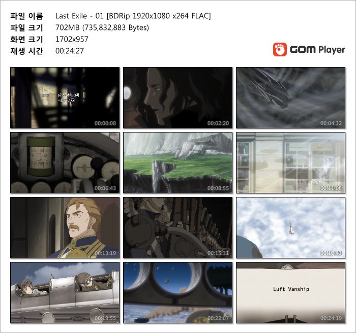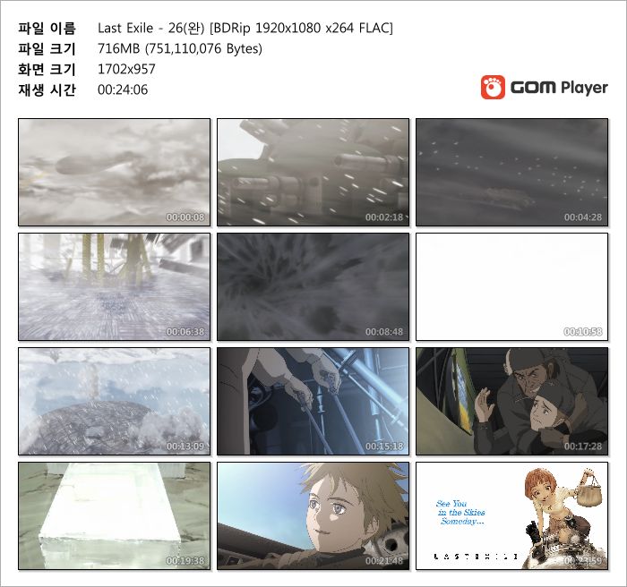 | Last Exile - 26(완) [BDRip 1920x1080 x264 FLAC].mkv | 716.3 M | MKV | 00:24:06 | 1920x1080 |