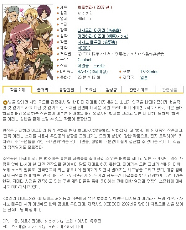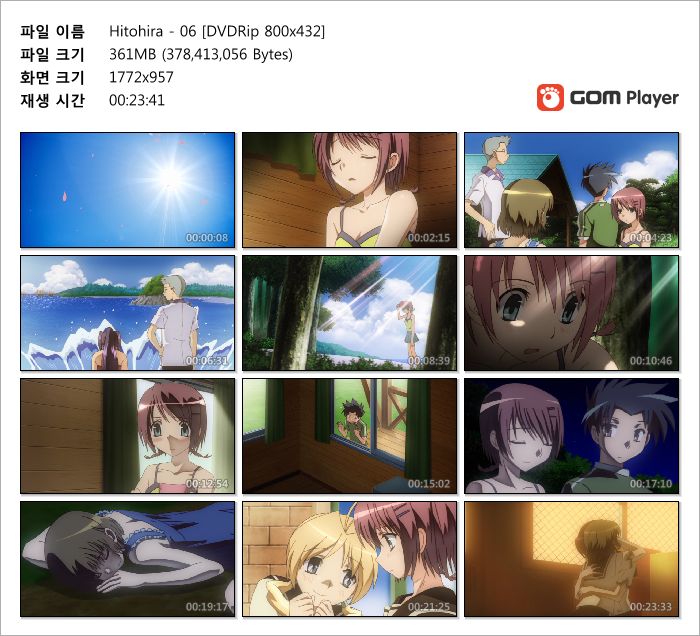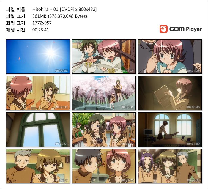 | Hitohira - 12(완) [DVDRip 800x432].avi | 360.8 M | AVI | 00:23:41 | 800x432 |