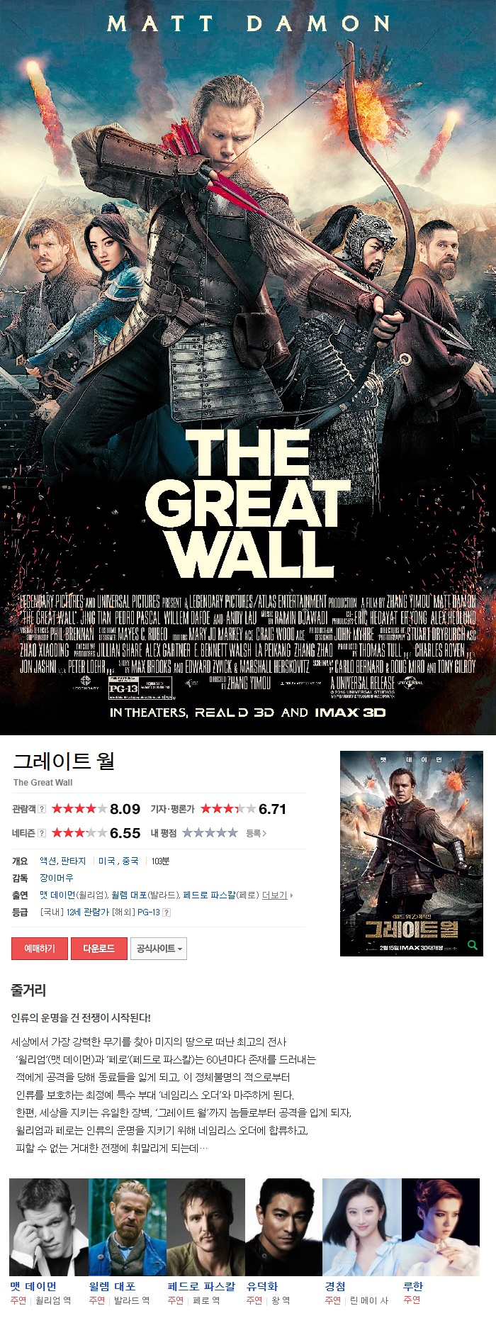 [ 그 레 이 트 월 ] 맷데이먼 초고화질 자체자막