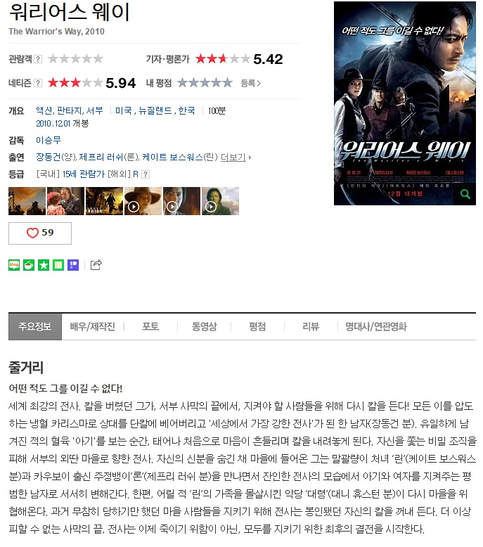 [ 워 리 어 스 웨 이 ] 2010 장동건 고화질 자체자막