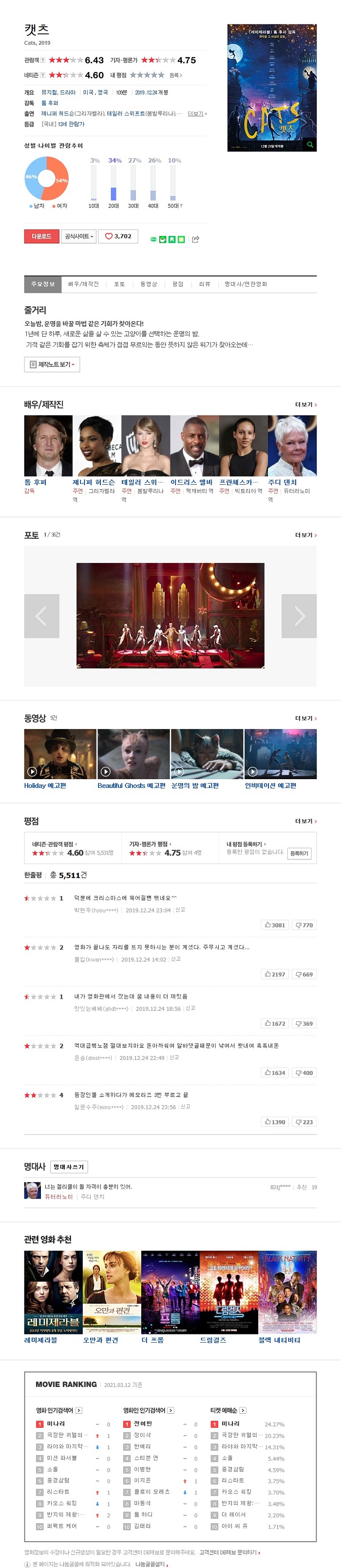 [ 캣츠 ] 2018 고화질 자체자막/