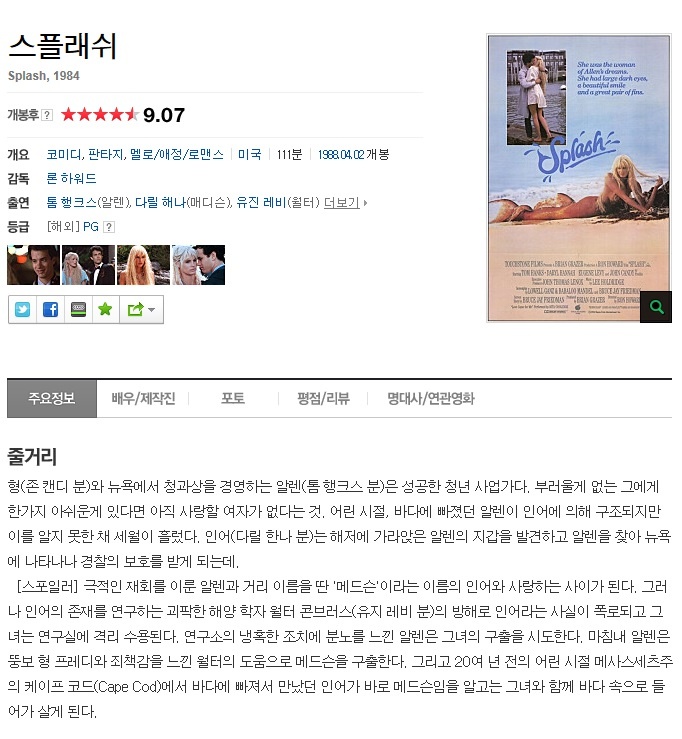 [ 스플래쉬 ] - 코미디,판타지,멜로,애정,로맨스.1988 한자막/