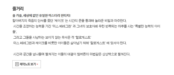 [ 미 스 페 레 그 린 과 이 상 한 아 이 들 의 집 ] 2016 한글자막/