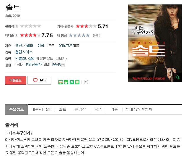 [ 솔 트 ] 안젤리나졸리의 통쾌한 액션/