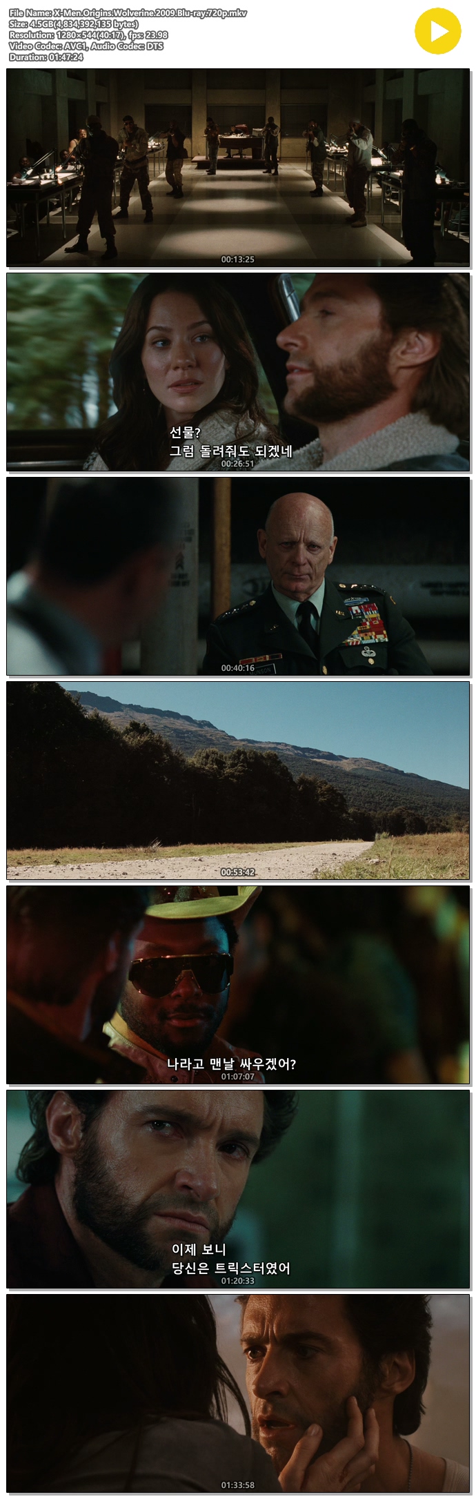 [ 엑스맨 4 엑스맨탄생 울버린 ] 2009 초고화질 한글자막/