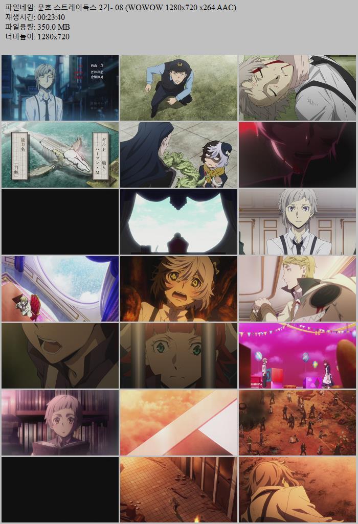 | 문호 스트레이독스 2기- 08 (WOWOW 1280x720 x264 AAC).mp4 | 350 M | MP4 | - | 1280x720 |