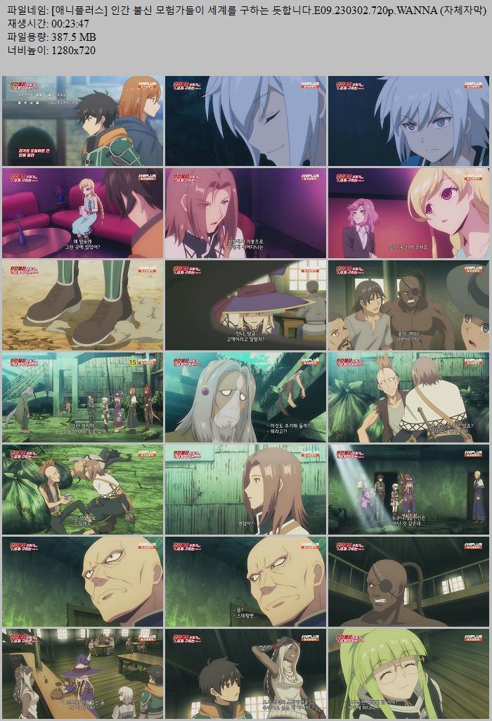 [애니플러스] 인간 불신 모험가들이 세계를 구하는 듯합니다.E09.230302.720p.WANNA (자체자막).mp4 387.5 M MP4 - 1280x720