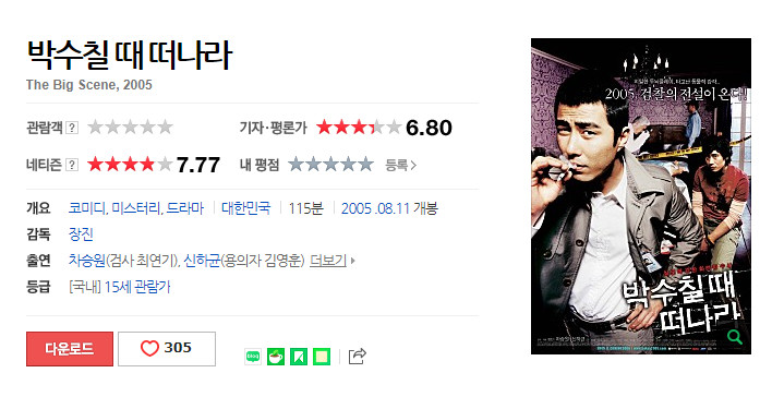 [코미디] 박수칠 때 떠나라 차승원 신하균 2005/