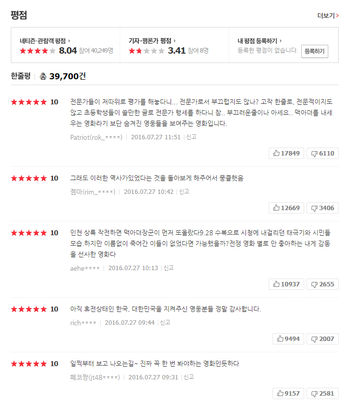 [전쟁] 인천상륙작전 이정재 이범수 리암니슨 2016
