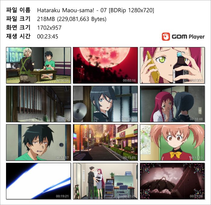 | Hataraku Maou-sama! - 07 [BDRip 1280x720].mp4 | 218.5 M | MP4 | 00:23:46 | 1280x720 |