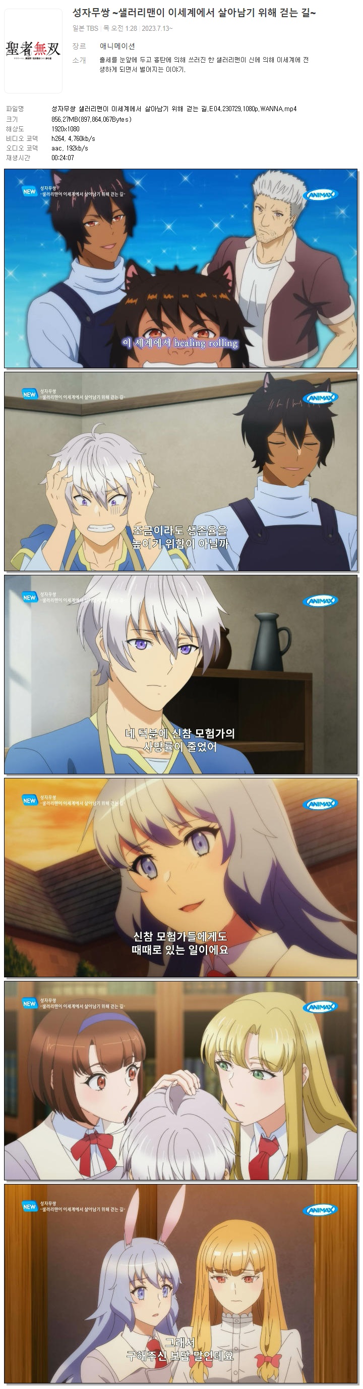 성자무쌍 샐러리맨이 이세계에서 살아남기 위해 걷는 길.E04.230729.1080p.WANNA.mp4 856.3 M MP4 00:24:07 1920x1080