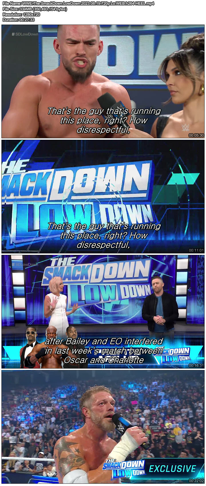 [동영상 - 스포츠] 에서 고화질이나 저화질 하나만 보인다면, 검색란에 [The SmackDown LowDown 2023.08.19] 적어서 검색 하시면 고화질, 저화질 모두 있습니다.