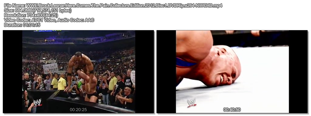 | WWE.Brock.Lesnar.Here.Comes.The.Pain.Collectors.Edition.2012.Disc1.DVDRip.x264-NWCHD.mp4 | 684.3 M | MP4 | - | - |