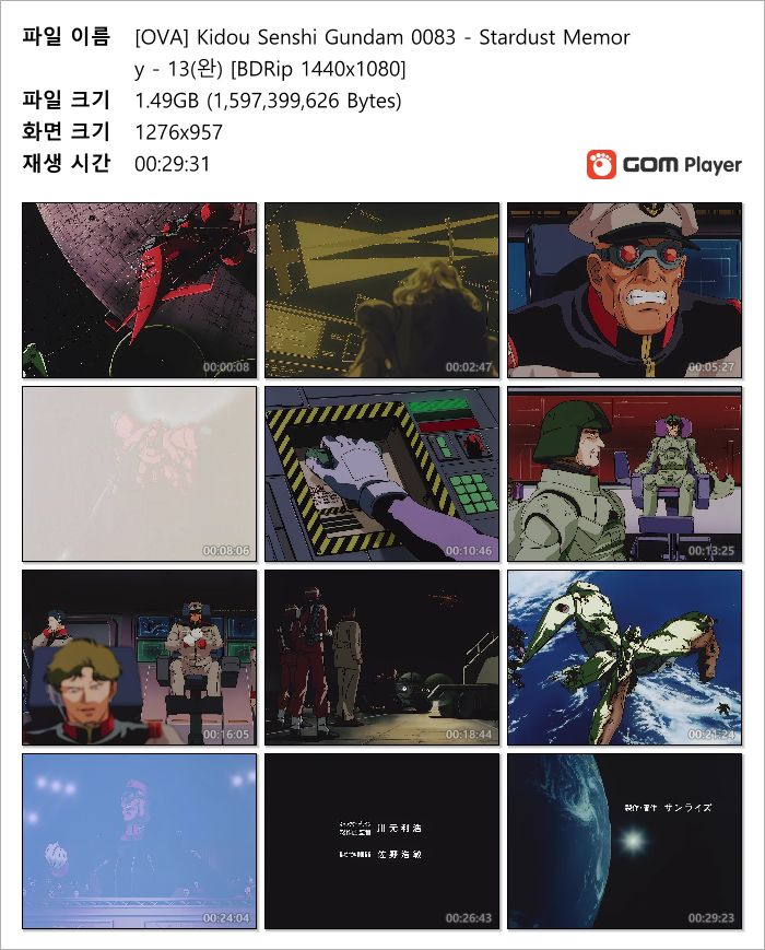 | [OVA] Kidou Senshi Gundam 0083 - Stardust Memory - 13(완) [BDRip 1440x1080].mkv | 1.5 G | MKV | 00:29:31 | 1440x1080 |