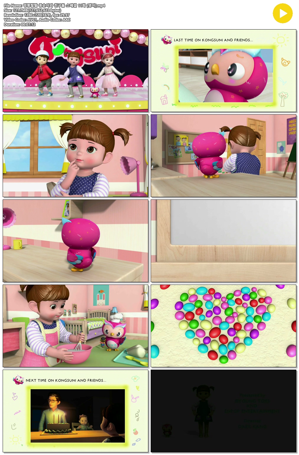 | 엉뚱발랄 콩순이와 친구들 스페셜 12화 [영어].mp4 | 121 M | MP4 | 00:07:08 | 1280x720 |