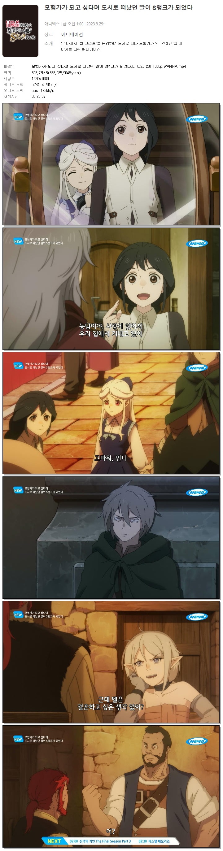 모험가가 되고 싶다며 도시로 떠났던 딸이 S랭크가 되었다.E10.231201.1080p.WANNA