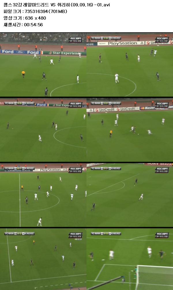[축구] 챔스 32강 레알마드리드 VS 취리히 (09.09.16)