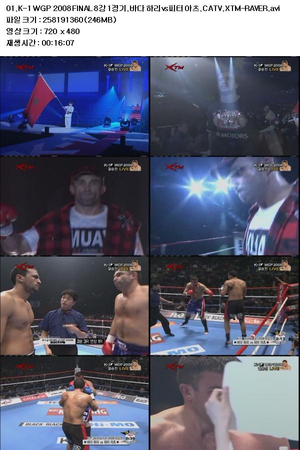 | 01.K-1 WGP 2008 FINAL 8강 1경기.바다 하리vs피터 아츠.CATV.XTM-RAVER.avi | 246.2 M | AVI | - | - |