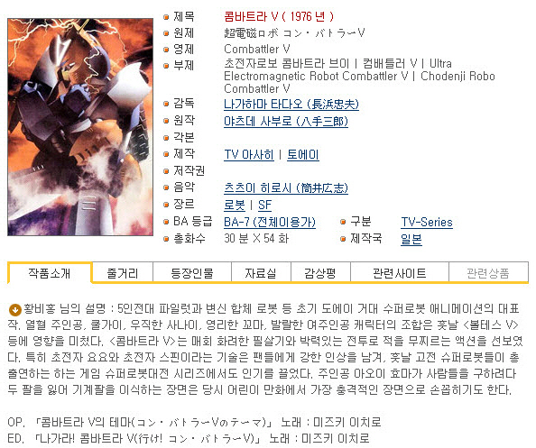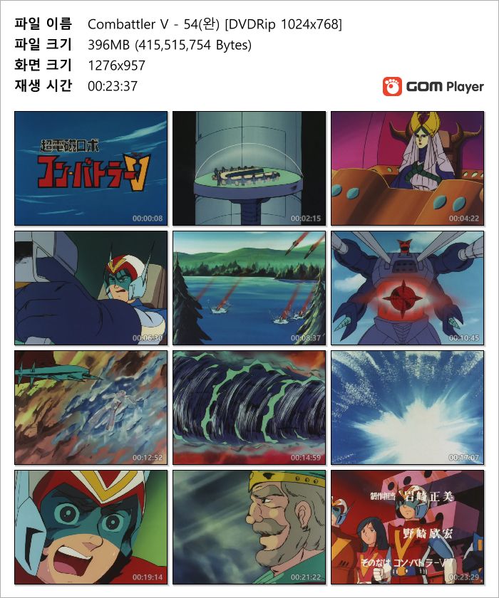 | Combattler V - 54(완) [DVDRip 1024x768].mkv | 396.3 M | MKV | 00:23:37 | 1024x768 |