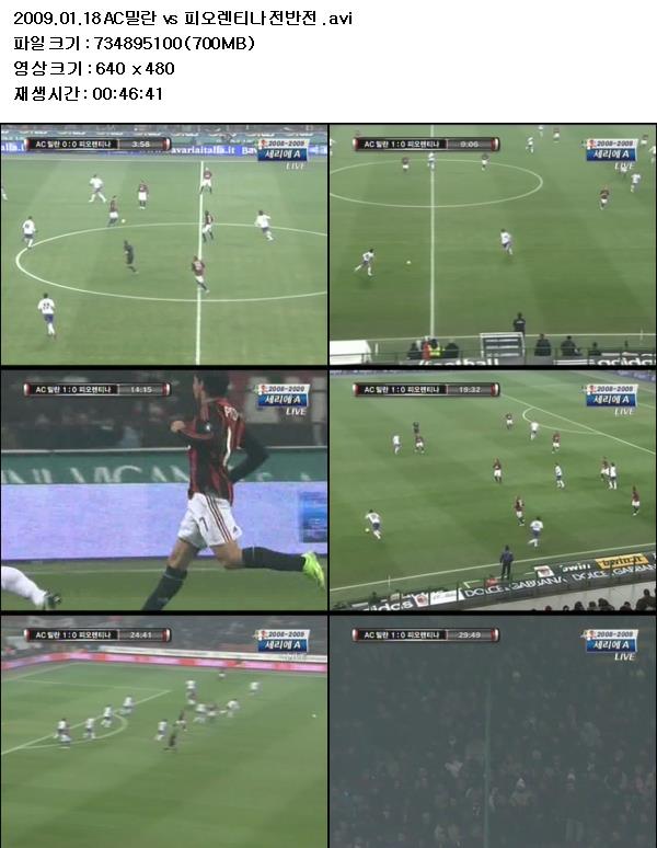 2009.01.18 AC밀란 vs 피오렌티나 후반전 .avi