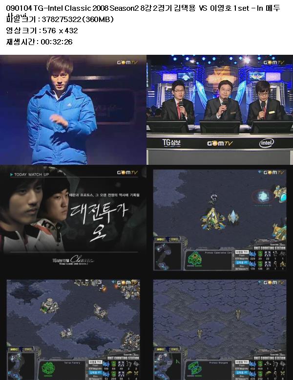 | 090104 TG-Intel Classic 2008 Season2 8강 2경기 김택용 VS 이영호 3set - In 데스티네이션.avi | 370 M | AVI | - | - |