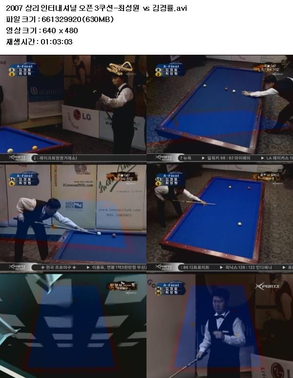 2007 상리 인터내셔널 오픈 3쿠션-최성원 vs 김경률.avi