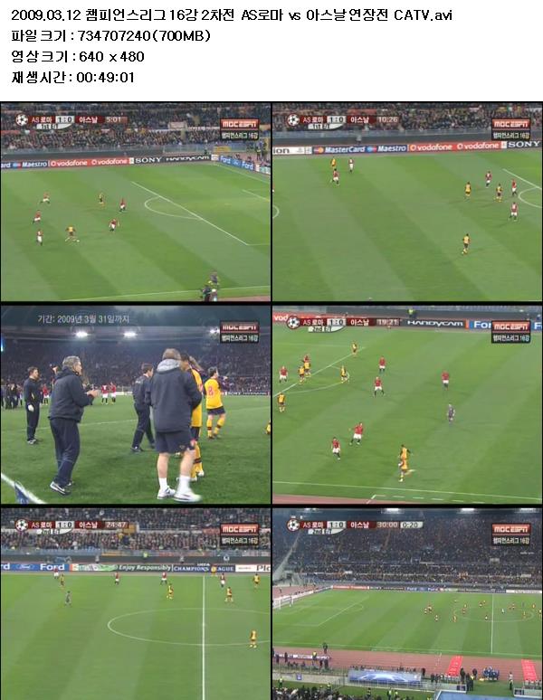 | 2009.03.12 챔피언스리그 16강 2차전 AS로마 vs 아스날 후반전 CATV.avi | 700.6 M | AVI | - | - |