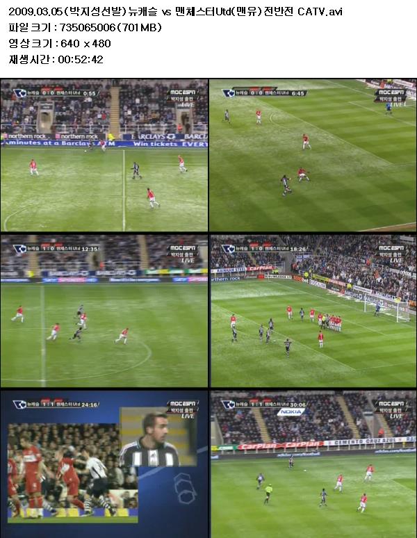 2009.03.05 (박지성선발) 뉴캐슬 vs 맨체스터Utd(맨유) 후반전 CATV.avi