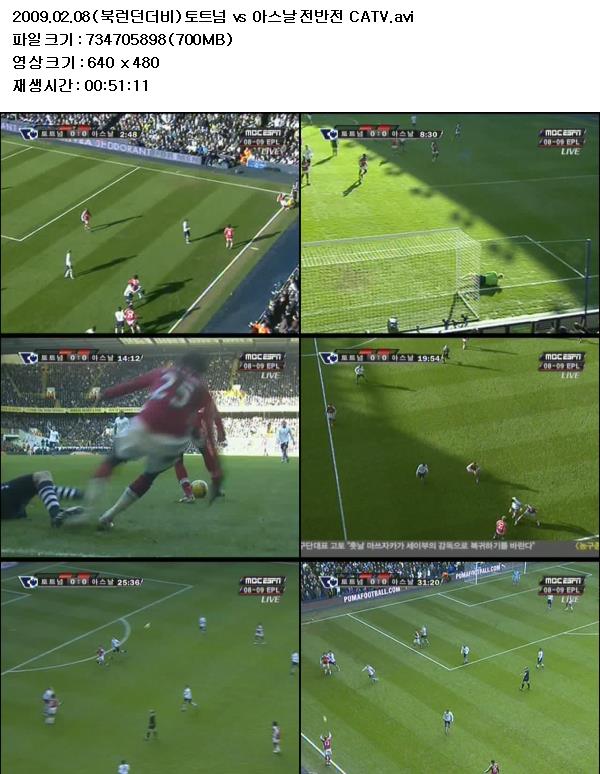 2009.02.08 (북런던더비) 토트넘 vs 아스날 후반전 CATV.avi