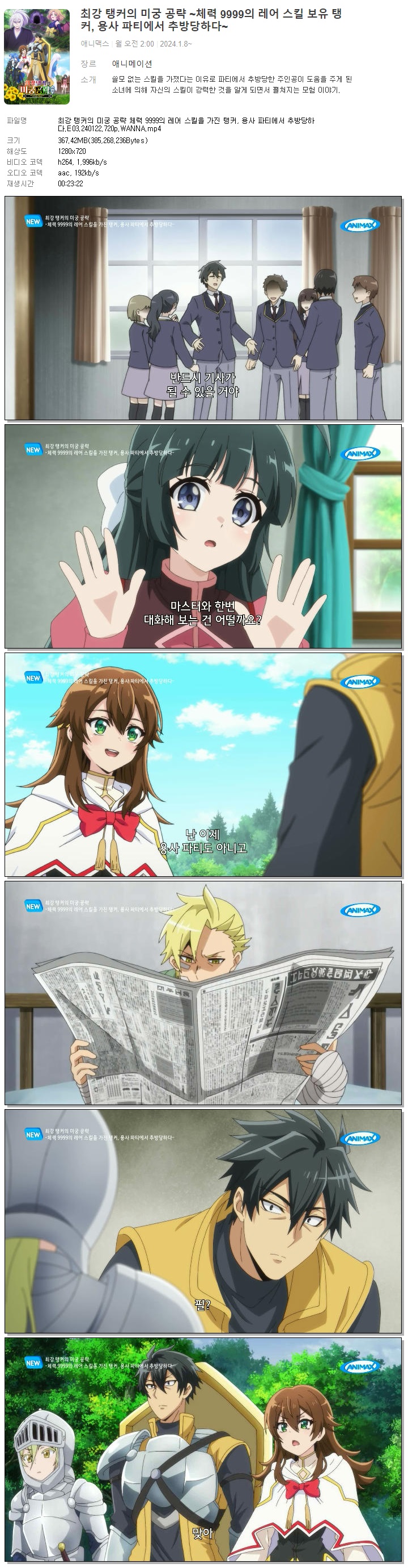 최강 탱커의 미궁 공략 체력 9999의 레어 스킬을 가진 탱커, 용사 파티에서 추방당하다.E03.240122.720p.WANNA