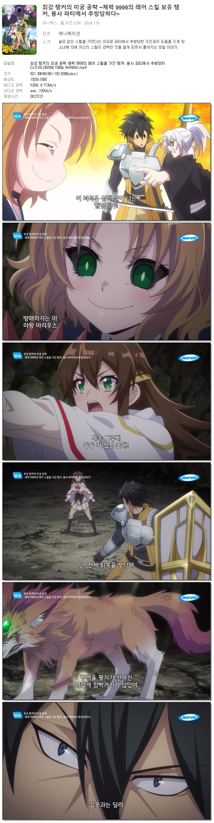 최강 탱커의 미궁 공략 체력 9999의 레어 스킬을 가진 탱커, 용사 파티에서 추방당하다.E09.240304.1080p.WANNA