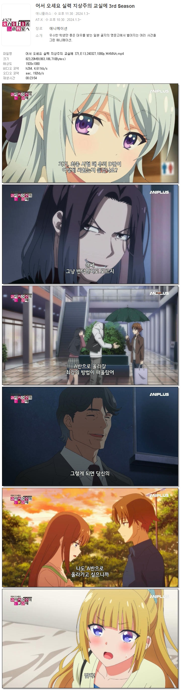 어서 오세요 실력 지상주의 교실에 3기.E13.240327.1080p.WANNA