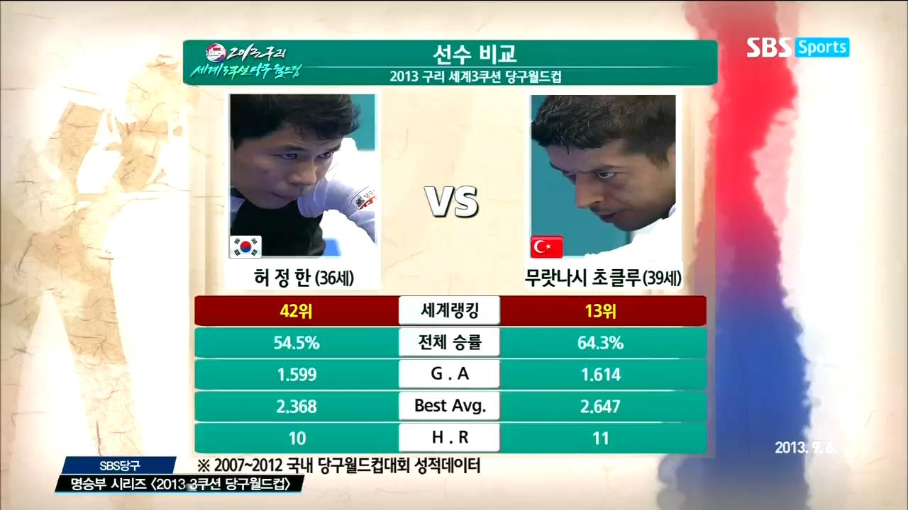 2013 세계 3쿠션 당구월드컵 허정한 vs 초클루 130906