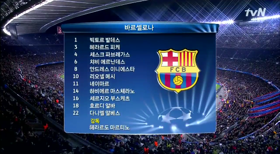 ico[챔피언스리그16강 2차전]바르셀로나 vs 맨시티 국내방송