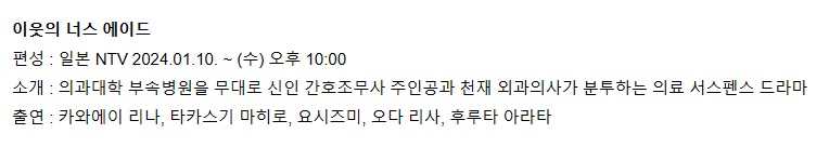 | 이웃의 너스 에이드 第01話 1080p 자체자막.mp4 | 1.3 G | MP4 | - | 1920x1080 |