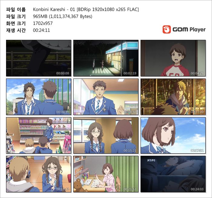 | Konbini Kareshi - 12(완) [BDRip 1920x1080 x265 FLAC].mkv | 803 M | MKV | - | 1920x1080 |