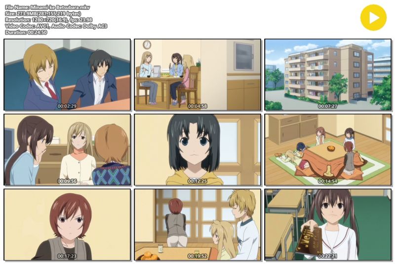| Minami-ke Omatase.mkv | 271.6 M | MKV | - | 1280x720 |