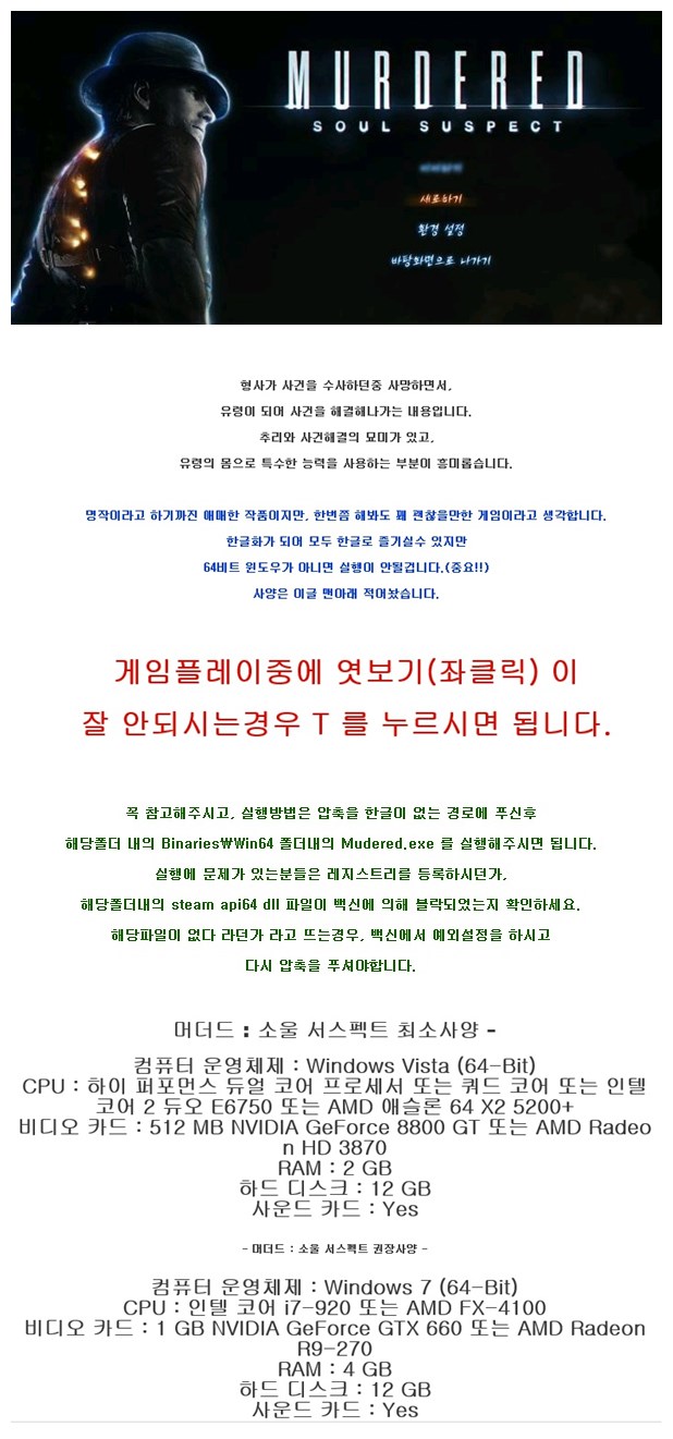 한글,무설치 머더드 소울 서스펙트 (윈64비트만 가능) 추리 사건해결