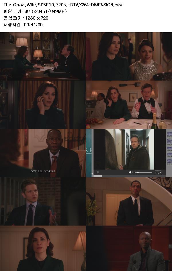 [한글자막] 굿 와이프 시즌5 19화 The.Good.Wife.S05E19 [고화질]