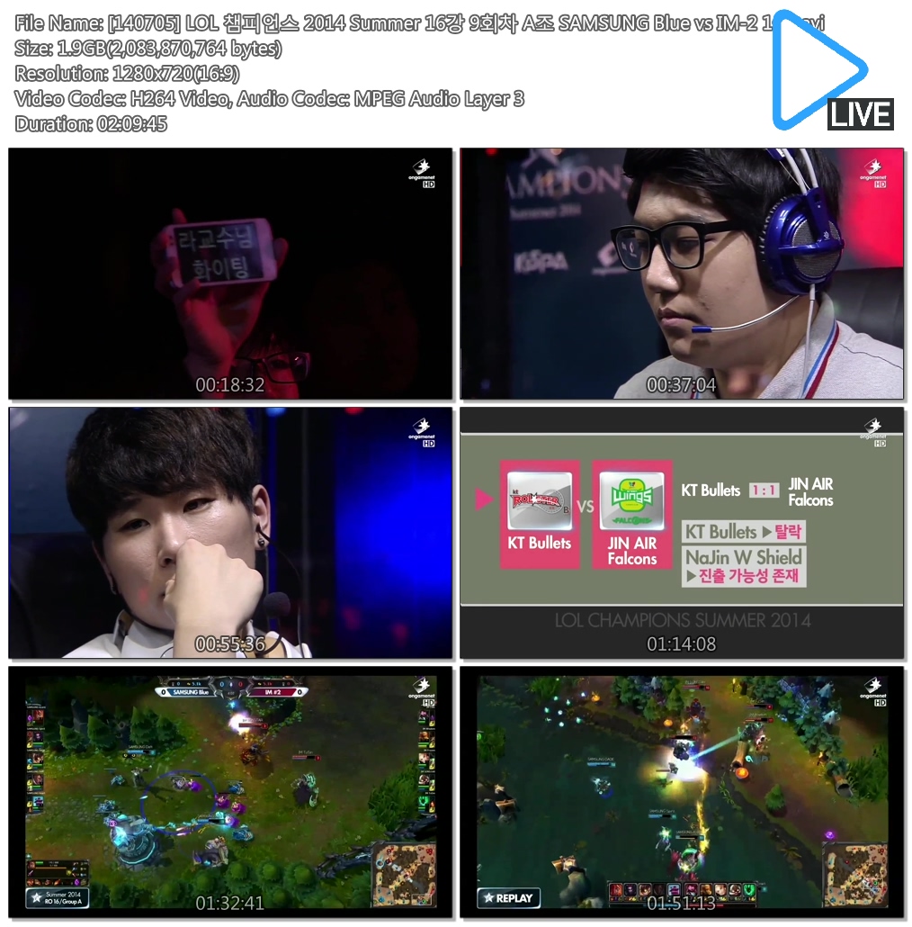 | [140705] LOL 챔피언스 2014 Summer 16강 9회차 B조KT Bullets vs JINAIR Falcons 2set.avi | 823 M | AVI | - | - |