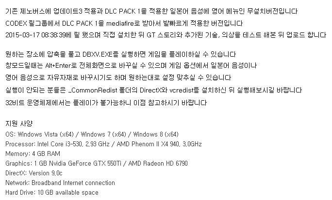 드래곤볼 제노버스 업데이트3 DLC1 적용 무설치