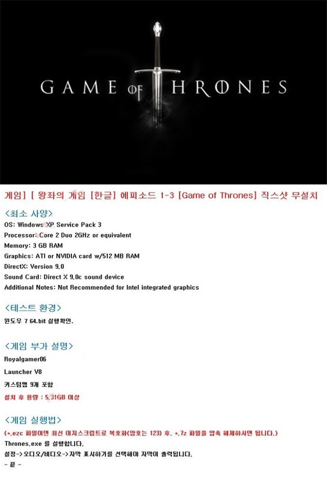 왕좌의 게임 [한글] 에피소드 1-3 [Game of Thrones]